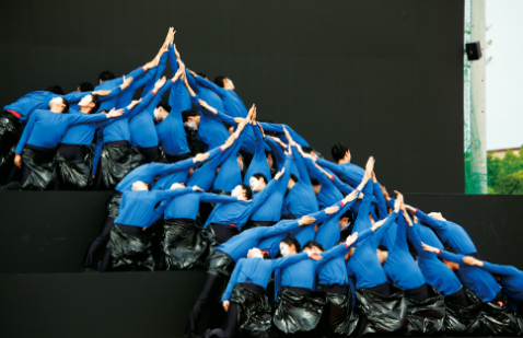重ね着した上着を早着替えし、黒からカラフルな色へと変えていく「応援合戦」。