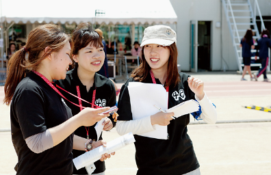 各学科・各運動部から選出された学生で構成され、毎年開催される体育祭の企画・運営に携わり、当日に向けて約半年間活動しています。