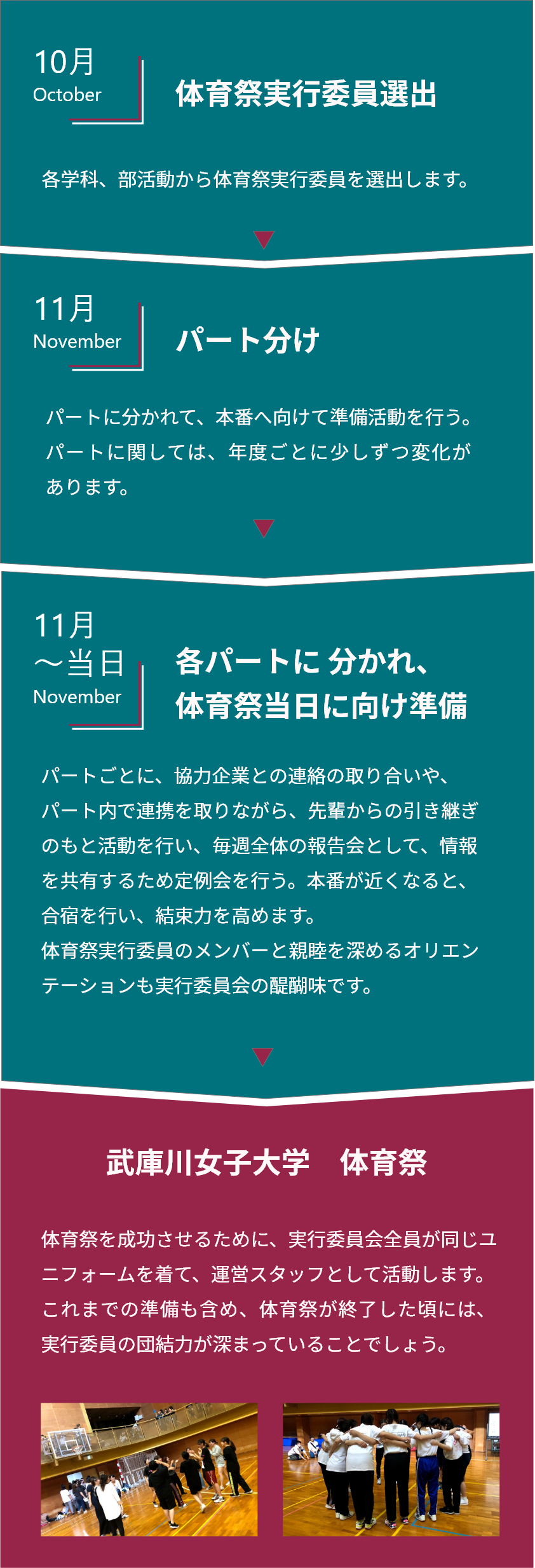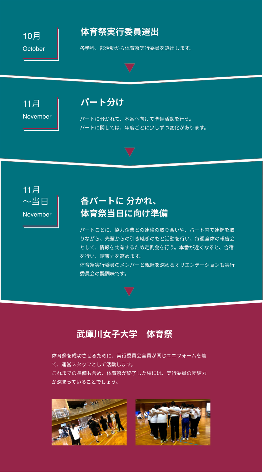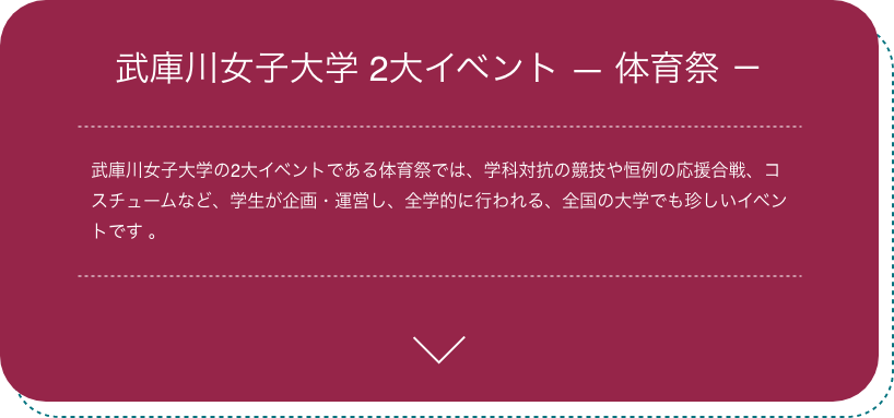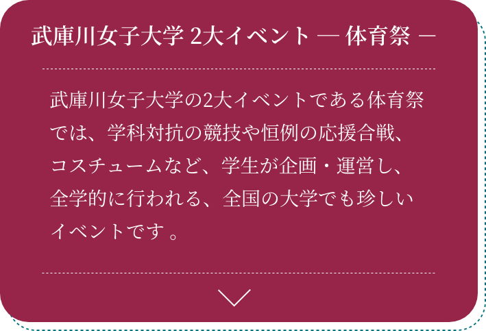 このホームページや動画を通して、少しでも武庫川女子大学の体育祭や応コスについて知っていただけると幸いです。