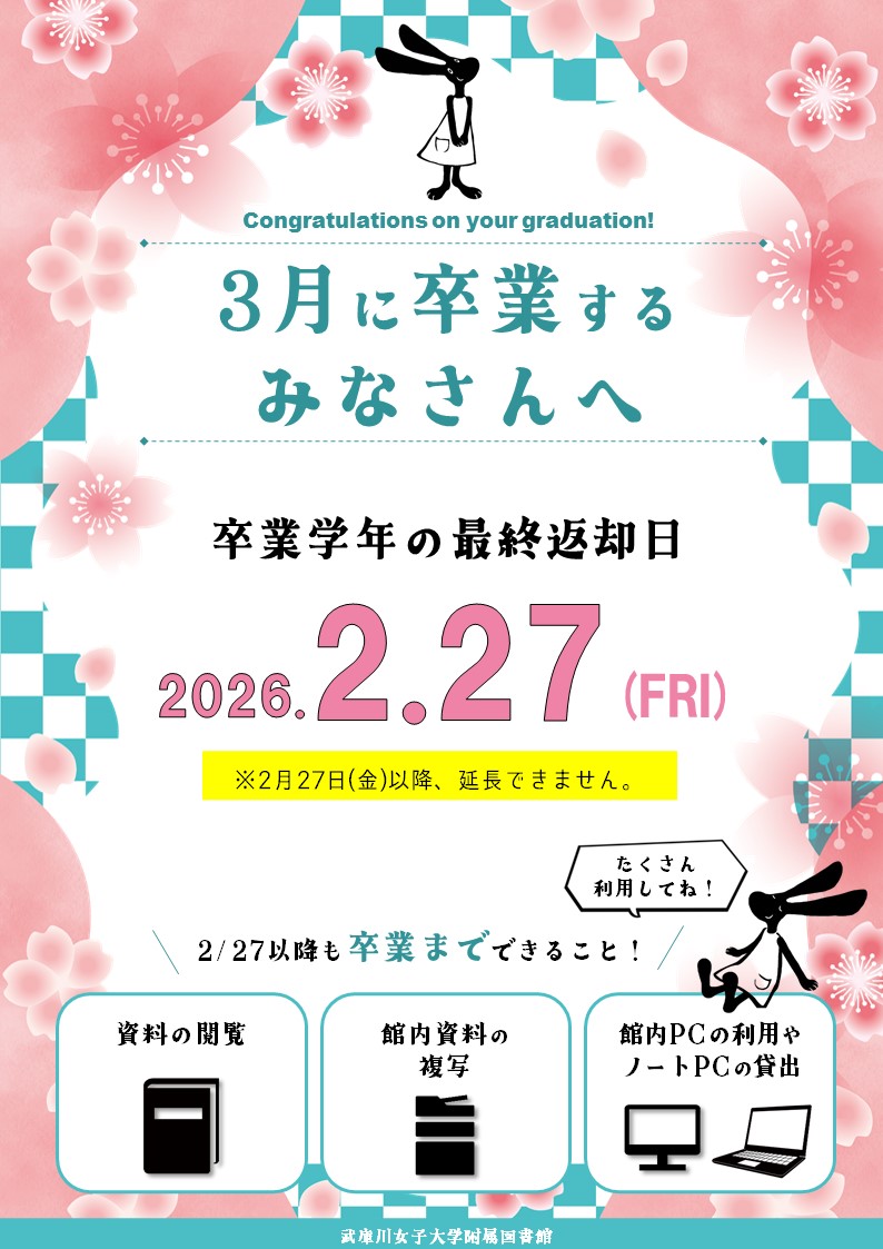 卒業学年の最終返却日は、2月27日(金)です