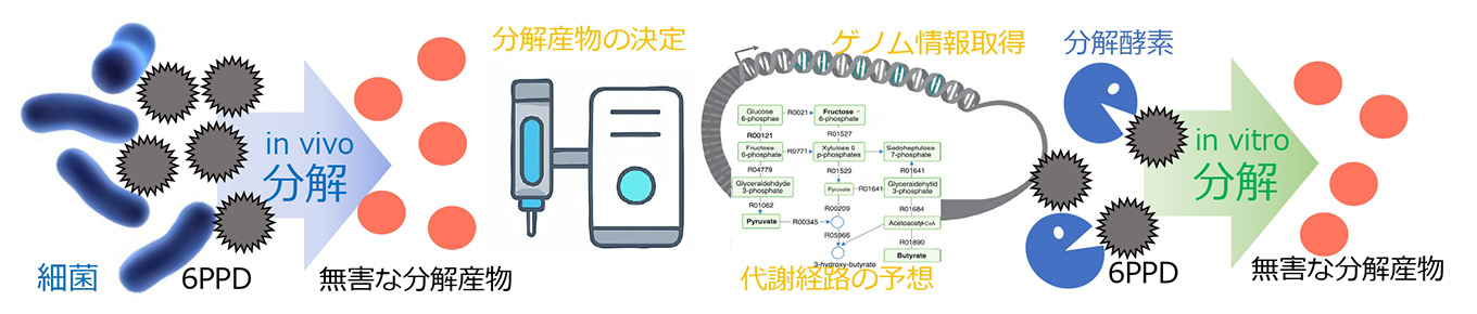 ヒトを含む生命を支える地球環境の維持は、多種多様な環境微生物に大きく依存しています。微生物は、汚染物質の分解、有害物質の蓄積、特定細菌の制御などの能力を持っています。本研究室では、環境微生物のこれらの能力に焦点を当て、環境問題の解決に取り組みます。 例えば、下水処理場の活性汚泥からマイクロプラスチックを分解する微生物を探索します。分解産物の構造決定やゲノム情報から分解代謝経路を予測し、関わる酵素群を同定することで、微生物代謝を模倣した分解技術の開発を目指します。