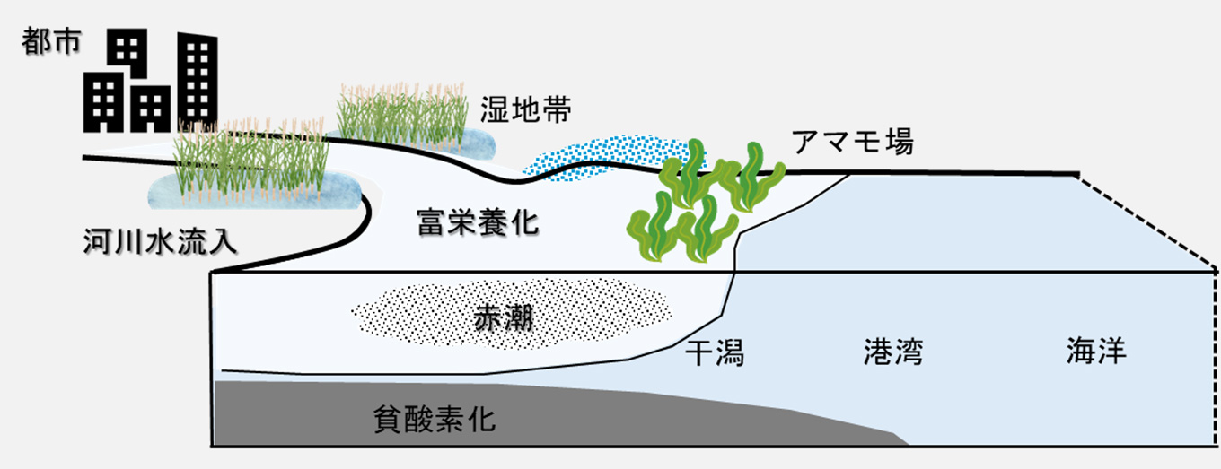 公共機関によってモニタリングデータを用いて大阪湾の水質等の長期変化を把握して、気候変動(ブルーカーボン)や貧栄養化に適応できるような技術や変化の予測手法を開発する。