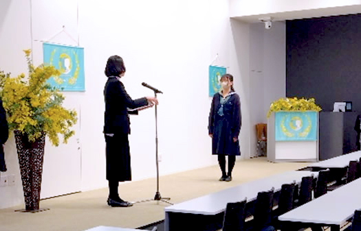 テーマ:「つかみたい未来 —〇〇と私―」に応募された作品について最終選考者4組のうち3組のスピーチのあと、審査と表彰式が行われました。(1名当日欠席)