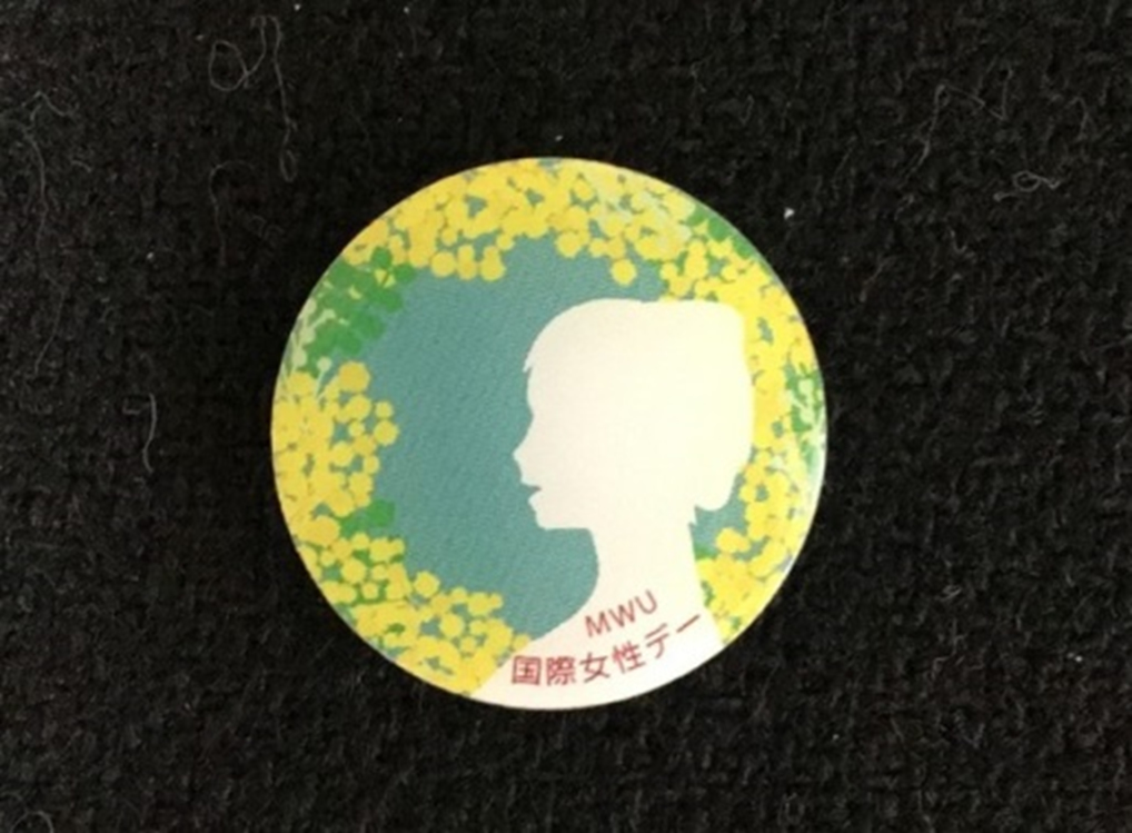 女性活躍総合研究所では「国際女性デー」を普及するために、ミモザと女性をモチーフにしたオリジナルピンバッチを作製しました。