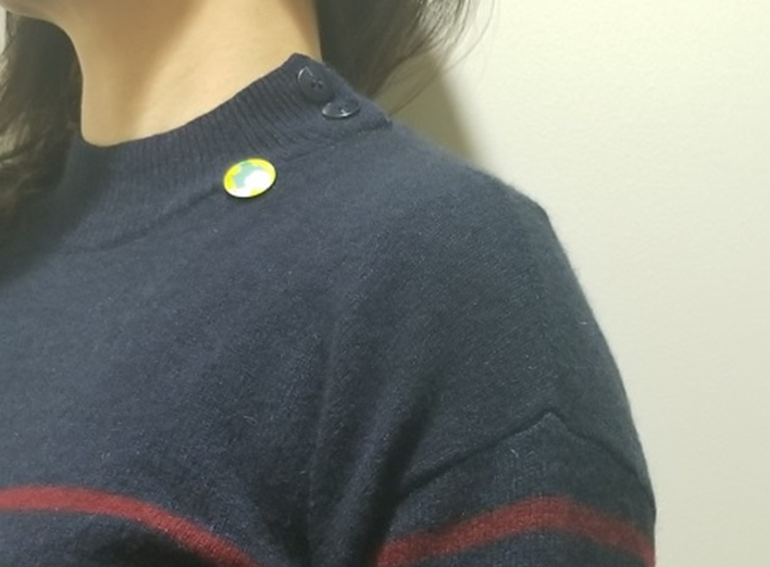 是非、えり元にピンバッチをつけてご協力をお願いします。