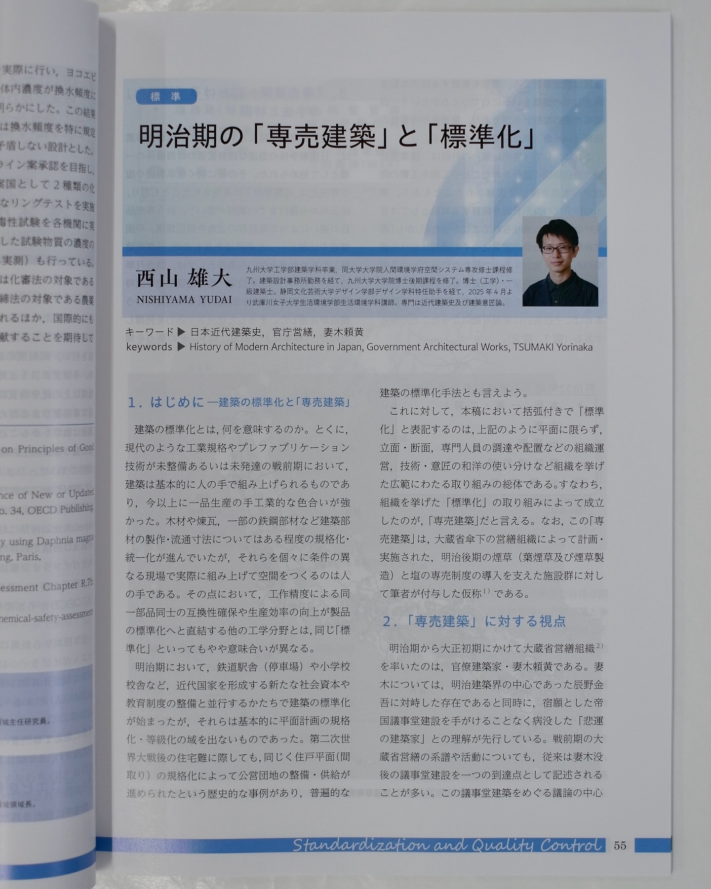一般財団法人日本規格協会が発行する季刊誌『標準化と品質管理』に西山雄大先生が寄せた論稿が、同誌Vol. 76,2025年秋号に掲載されました(pp. 55-60)。