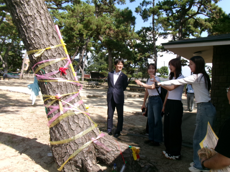 小学4年の男子児童は、「クルーズで巡ったコースを、今度は歩いて回りたい」と話し、地元への関心を深めました。参加した三宅ゼミ4年の井上遥さんは、「自分の言葉で伝える大切さを学べました」と述べ、同4年の岩田梨里さんは「神話が生まれる場所の面白さを感じました」と振り返りました。