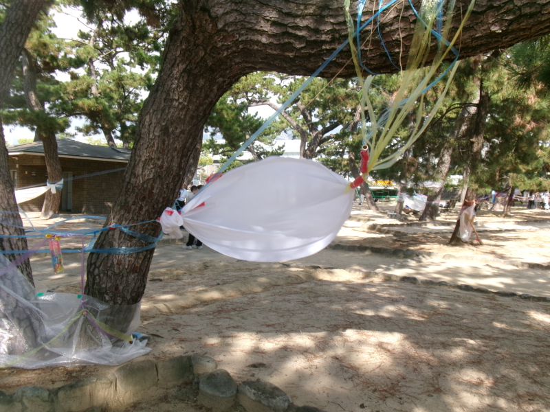 芦屋市立精道小学校の6年生による芦屋公園アートプロジェクトが9月30日と10月1日の二日間、芦屋公園(芦屋市)であり、生活環境学部の三宅正弘教授のゼミに所属する3年生10人がサポート役を務めました。