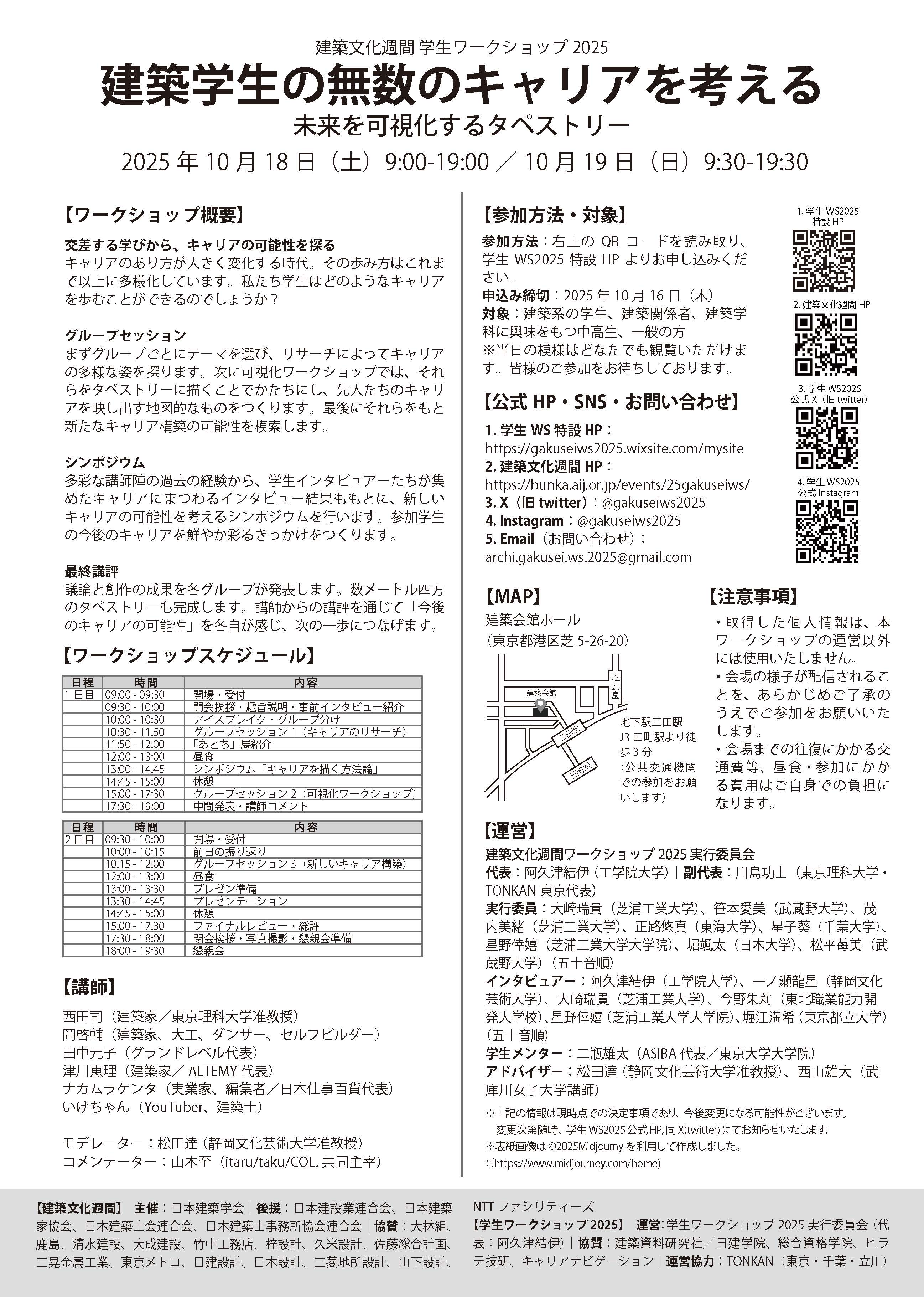 日本建築学会主催 建築文化週間 学生ワークショップ2025「建築学生の無数のキャリアを考える:未来を可視化するタペストリー」が開催されます。