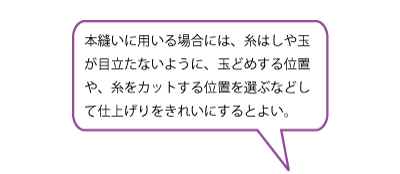 縫い終わりに糸が抜けないように作る結び玉のことで、針先に2,3回糸を巻きつけて針を引き抜き、糸を引き締め糸端を少し残して切る。 作品を美しく仕上げるためには、玉どめが目立たないように配慮することも必要である。 本縫いに用いる場合には、糸端や玉が目立たないように、玉どめする位置や、糸をカットする位置を選ぶなどして仕上げをきれいにするとよい。