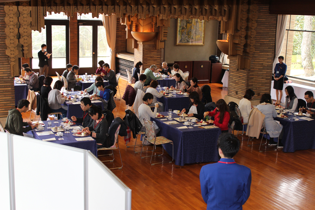 昨年度は、会館職員がティータイム中に甲子園会館について簡単な紹介をしましたが、館内見学までは行いませんでした。参加者から館内見学も実施してほしいという意見が多く寄せられたため、平成30年度は10時からの午前の部と14時からの午後の部に分け、それぞれ1時間のガイドツアーと1時間のティータイムを設定しました。