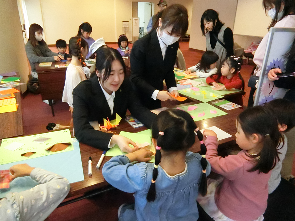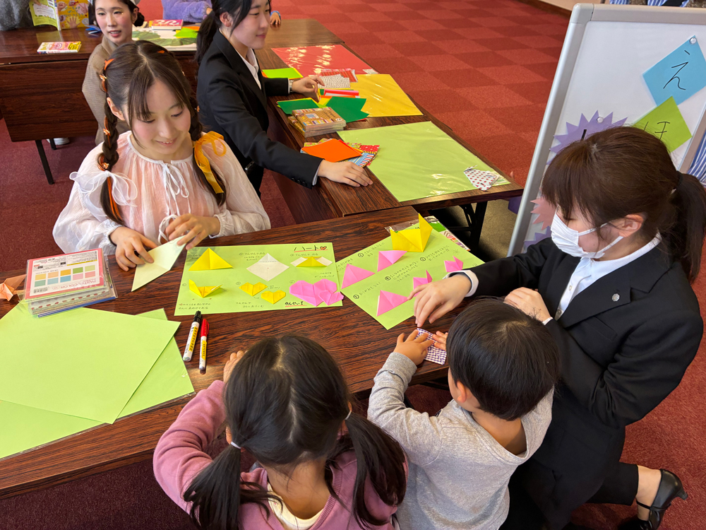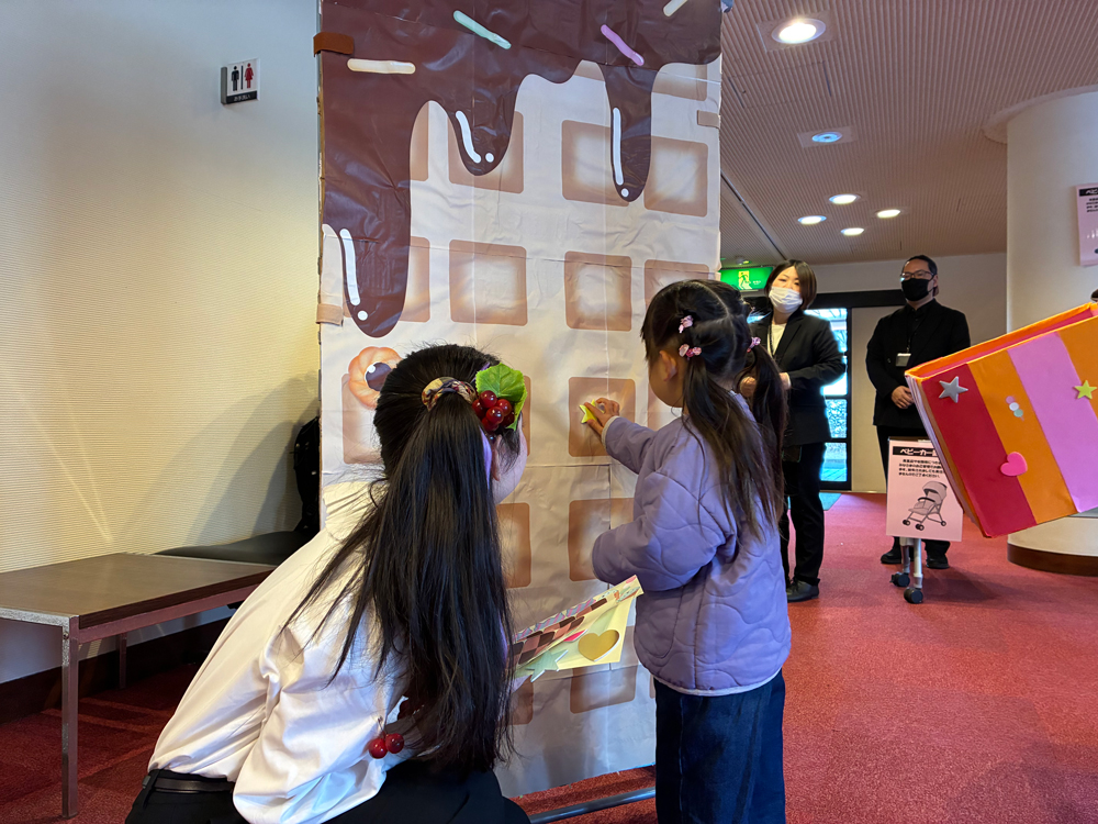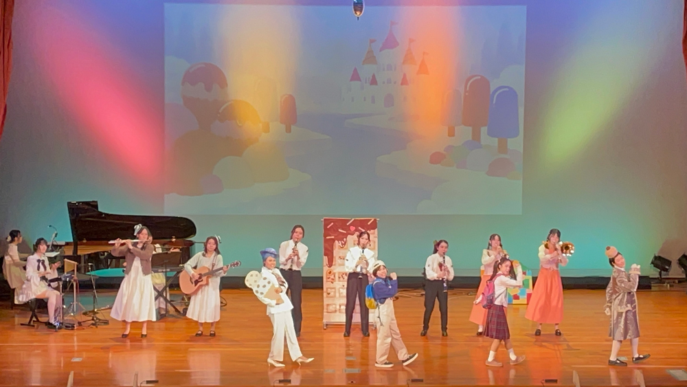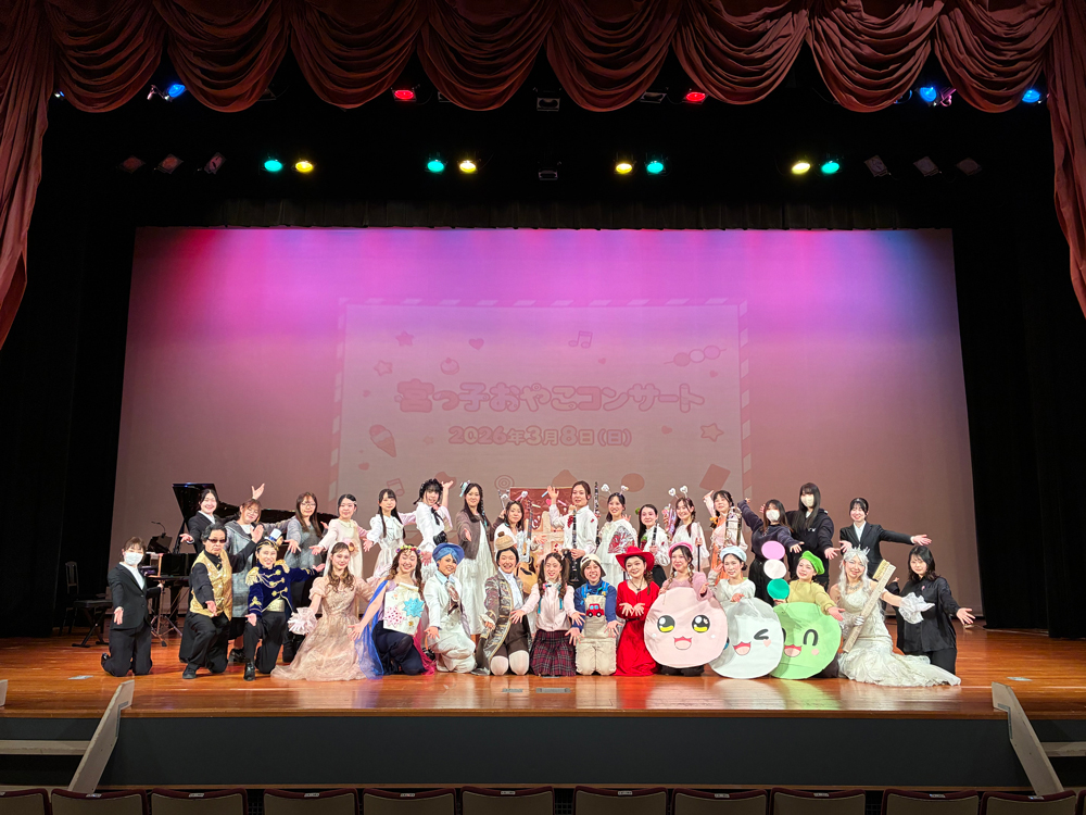 2026年3月8日(日)になるお文化ホールで「宮っ子おやこコンサート」を開催しました。 武庫女みやっこ音楽隊(音楽学部の有志)が、0歳から楽しめるコンサートをテーマに、企画、運営、出演まですべて自分たちで行いました。 たくさんの方にご来場いただき、一緒に歌ったり、手拍子をしてもらったりと会場は大いに盛り上がりました。また、ロビーでは折り紙コーナーや、舞台で使用する道具のデコレーションコーナーなど、演目以外でも楽しんでいただき、学生にとっても良い経験となりました。