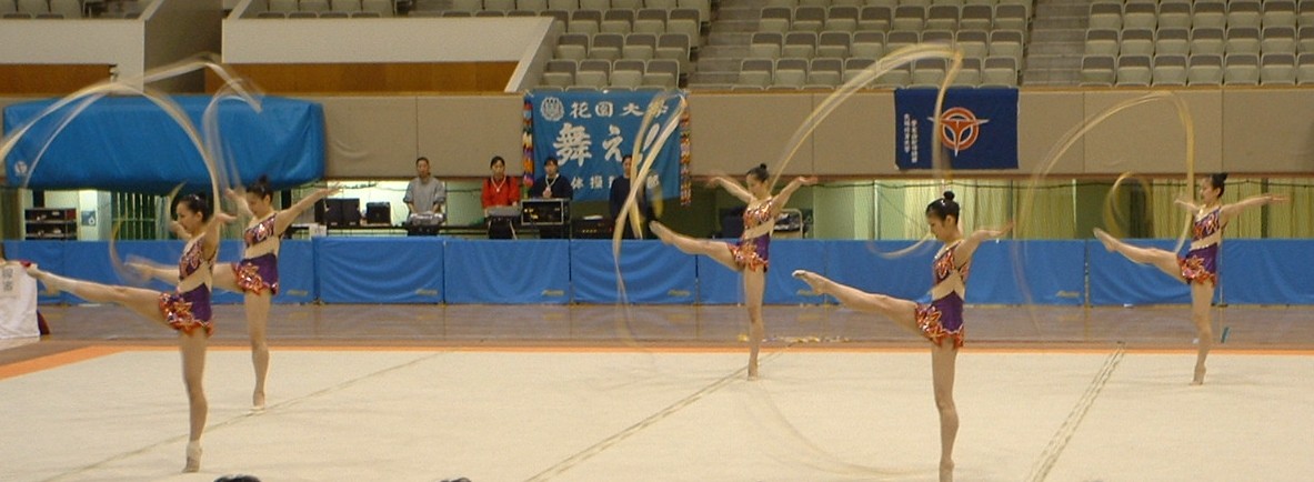 H15 西日本インカレ 団体Aチーム 優勝(3年連続) 団体Bチーム 4位 個人総合 中塚智子 1位 (3年連続)、愛媛新聞に掲載 大城千枝 5位、久保津さやか 8位 田所加衣 10位、岸本亜衣 12位、西岡香絵 14位