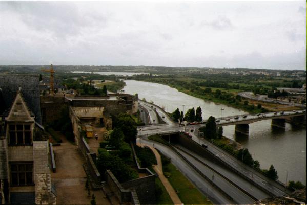ロワールの古城の中でも一番下流にあるアンジェ城は、ロワールとその支流であるメーヌ川の合流地点にある。城自体はメーヌ川に沿っており、城壁に登れは、メーヌ川を眺めることができる。城壁の上を一周してみよう。