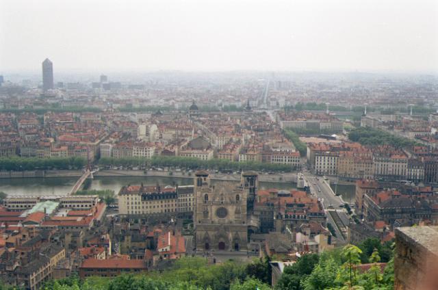 リヨンという街には、北から南にローヌ川(東側)とソーヌ川(西側)が流れている。ソーヌ川の西には山(フルビエールの丘)があり、その麓は、15世紀頃の古い家並の残る旧市街となっている。二つの川に挟まれた部分は、新しいながらも雰囲気のある市街が形成されており、さらに、ローヌ川の東岸には、近代的な新市街が広がっている。街は、りっぱな教会の建つ山がすぐ近くまで迫っているという風光明媚な街である。